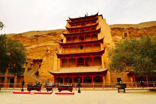 敦煌莫高窟位于甘肃省敦煌市,是甘肃省敦煌市境内的莫高窟、西千佛洞的总称,为我国著名的四大石窟之一,同时也是世界上现存规模最宏大,保存最完好的佛教艺术宝。据说前秦符坚建元二年(公元366年)有沙门乐尊者行至此处,见鸣沙山上金光万道,状有千佛,于是萌发开凿之心,后历建不断,遂成佛门圣地,号为敦煌莫高窟,俗称千佛洞。观敦煌佛教宏伟,领西北人民热情风情。
